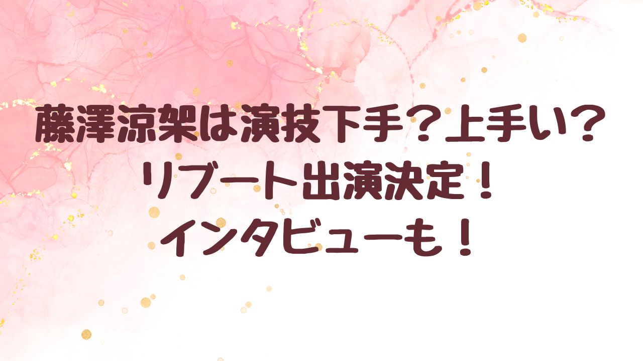 藤澤涼架は演技下手?上手い?